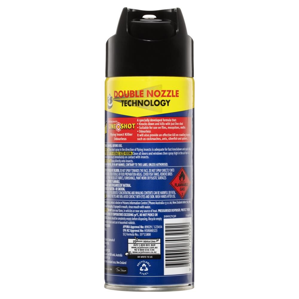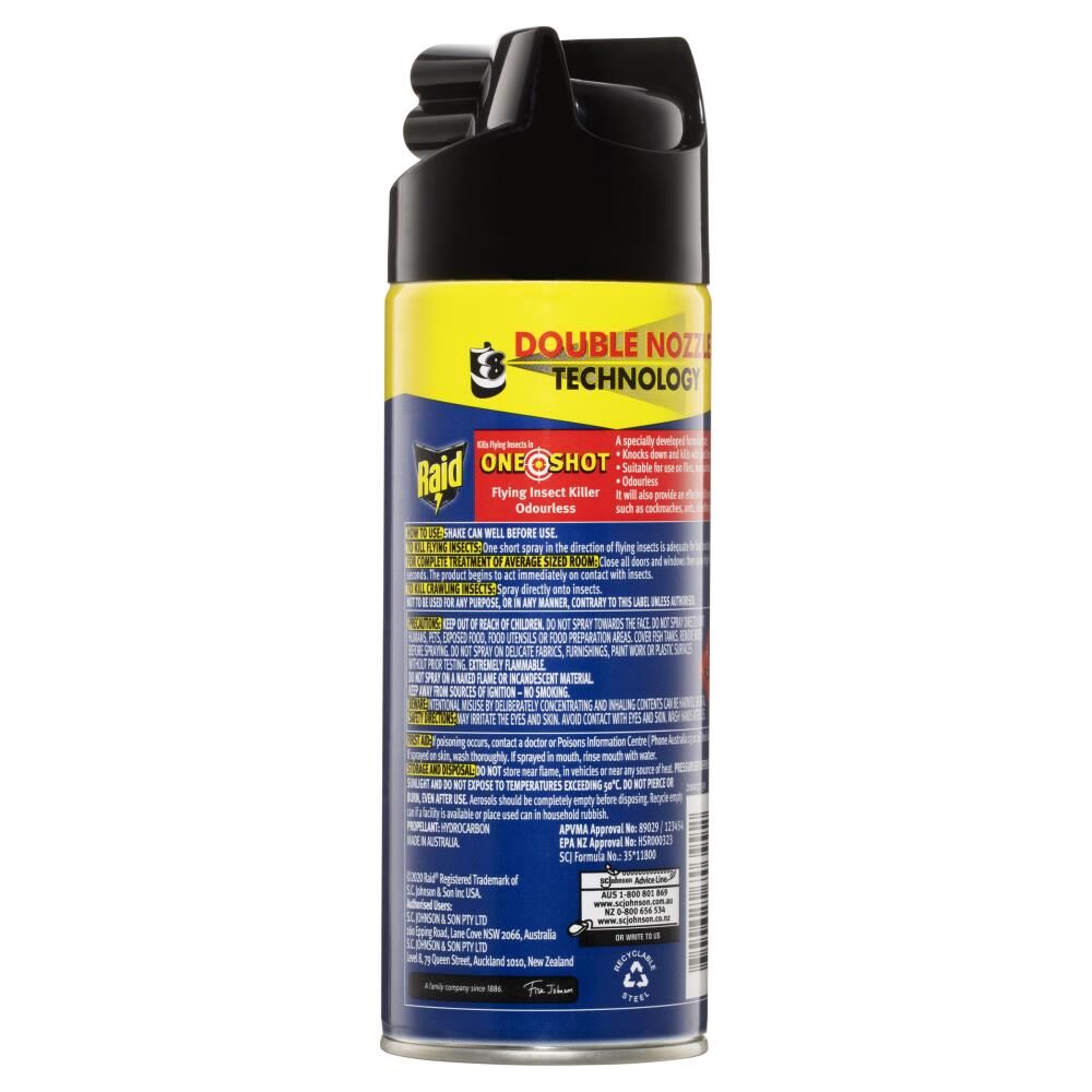 Stop flies, mosquitoes, moths, and more flying insects in their tracks with Raid One Shot Flying Insect Killer. With double nozzle technology, you can knock down and kill flying insects with just one shot. Odourless, this insect killer spray is suitable for use on flies, mosquitoes, moths, and more. In fact, you can use it as an effective kill on crawling insects if you need, such as cockroaches, ants, silverfish, and spiders. Ideal for home and office offices, this insect killer control is easy to carry and use. More than a garden pest spray, this Raid One Shot Flying Insect Killer is for outdoor and indoor use.