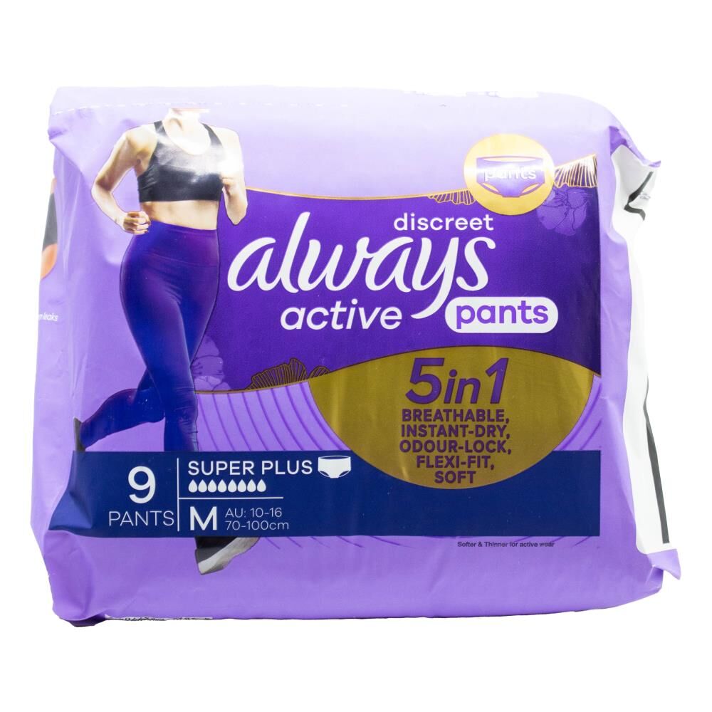 Always Discreet Pants Super Plus Size Medium 5-in-1 Protection Waist 70-100cm Pack of 9's