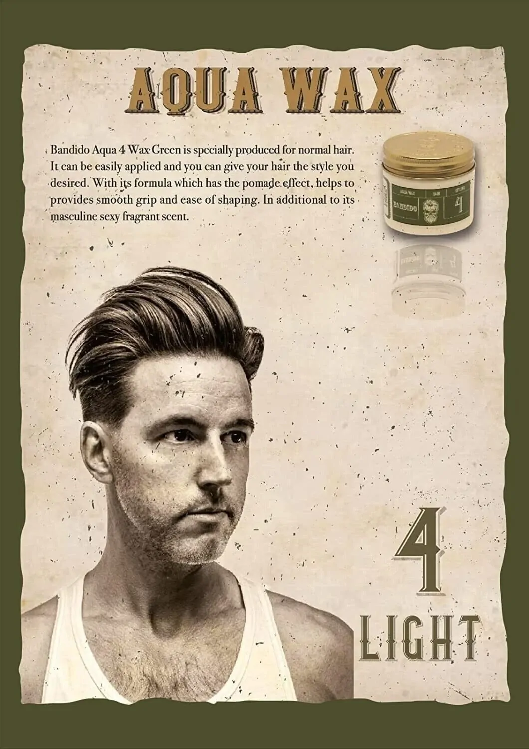 Bandido Aqua Green Wax 4 Light hold is specially produced to shape your hair to appear natural. It can be easily applied and you can give your hair the shape you desired.