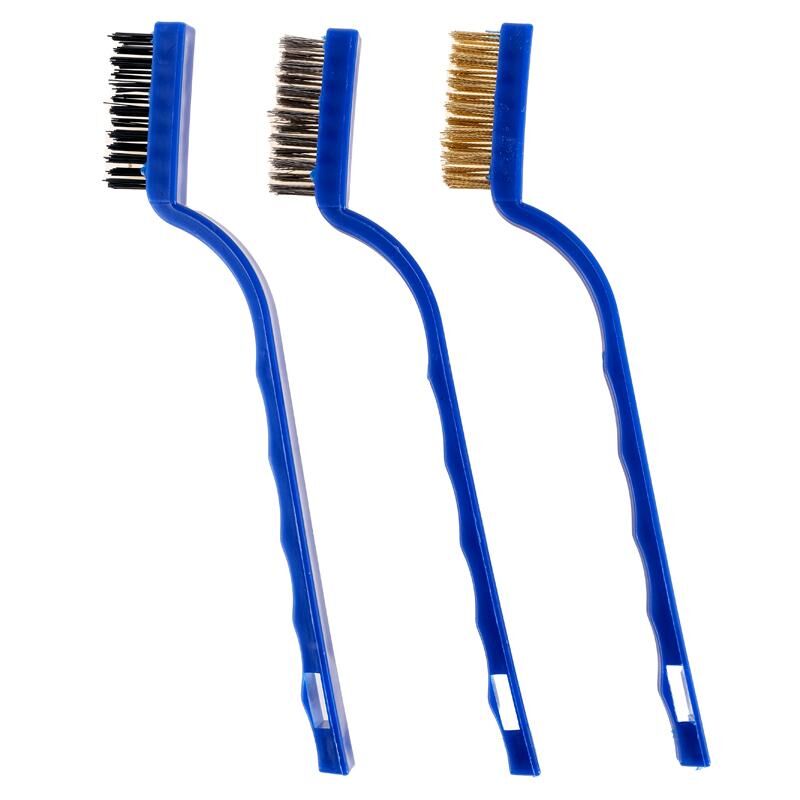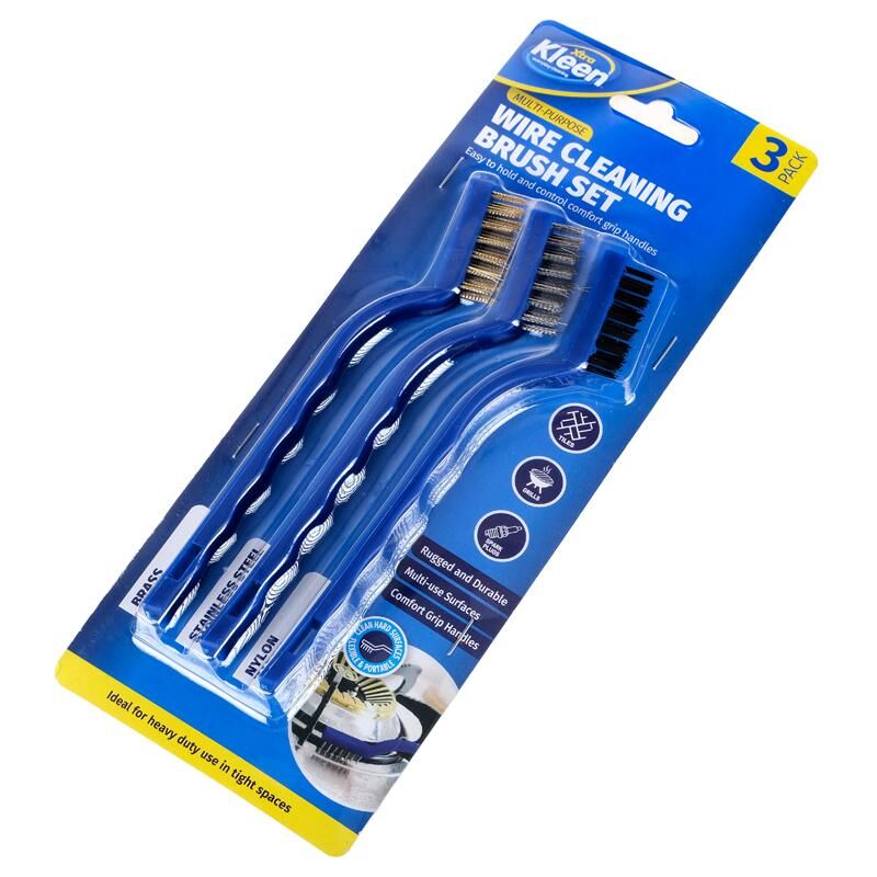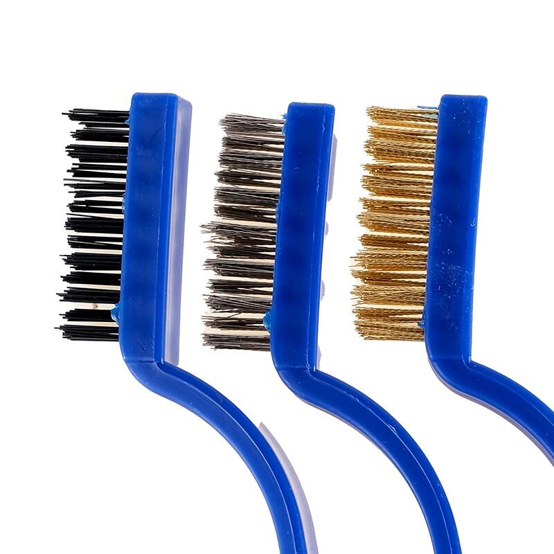 Wire Cleaning Brush Set which can also be conveniently used for cleaning quite a lot of kitchen appliances like gas burner, taps and so on. It may be also used for polishing and texturing metals for all kinds of uses when working to your car or around the house, kitchen and toilet. It consists of 3 pack wire brush set and comes in blue color.